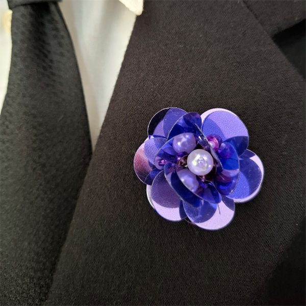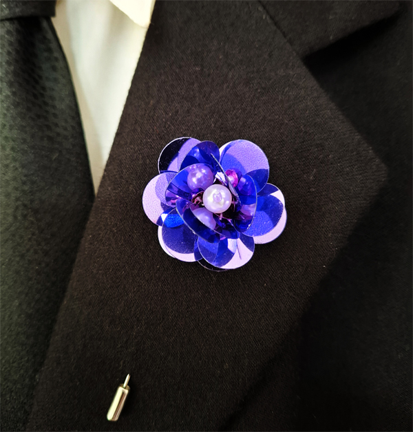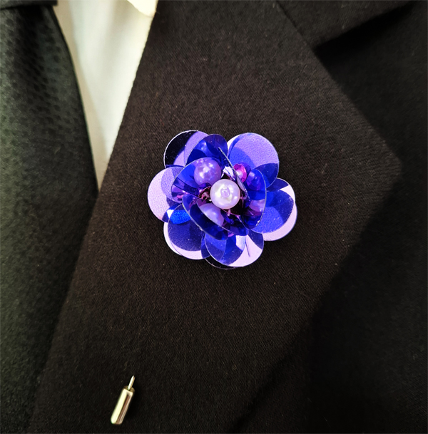 Boutonniere Rose in Blau mit Glaskristallen Perlen Reversnadel
